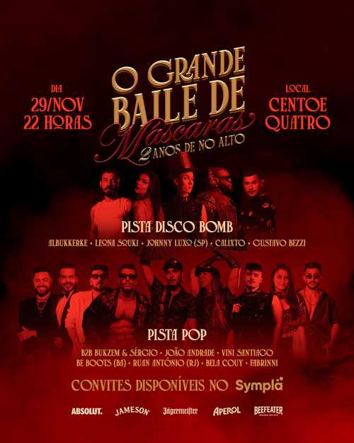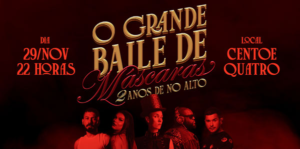 No dia 29 de novembro, próximo sábado, o lendário Espaço Cento&Quatro abre suas portas para uma noite onde luxo, mistério e celebração se encontram. O Grande Baile do No Alto Bar — que nesta edição chega com o tema Máscaras. Depois do último ano no Automóvel Clube, o evento agora ganha uma nova ambientação inspirada na tradição dos bailes de máscaras, onde cada presença é um segredo e cada olhar esconde uma história.